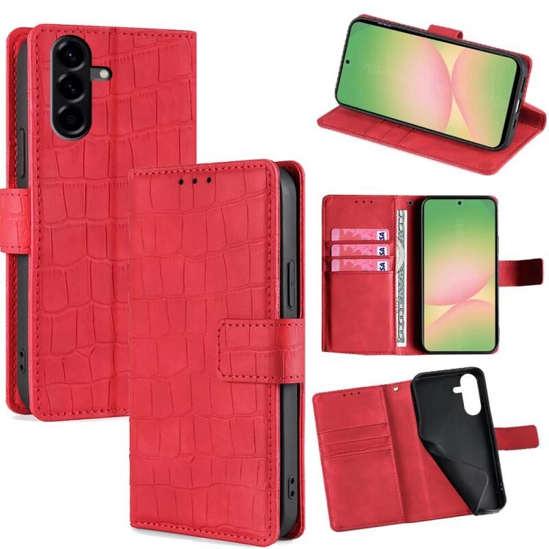 Θήκη τηλεφώνου Samsung Galaxy A56 5G από δέρμα με υφή κροκόδειλου και μαγνητικό κούμπωμα (Μαύρο)