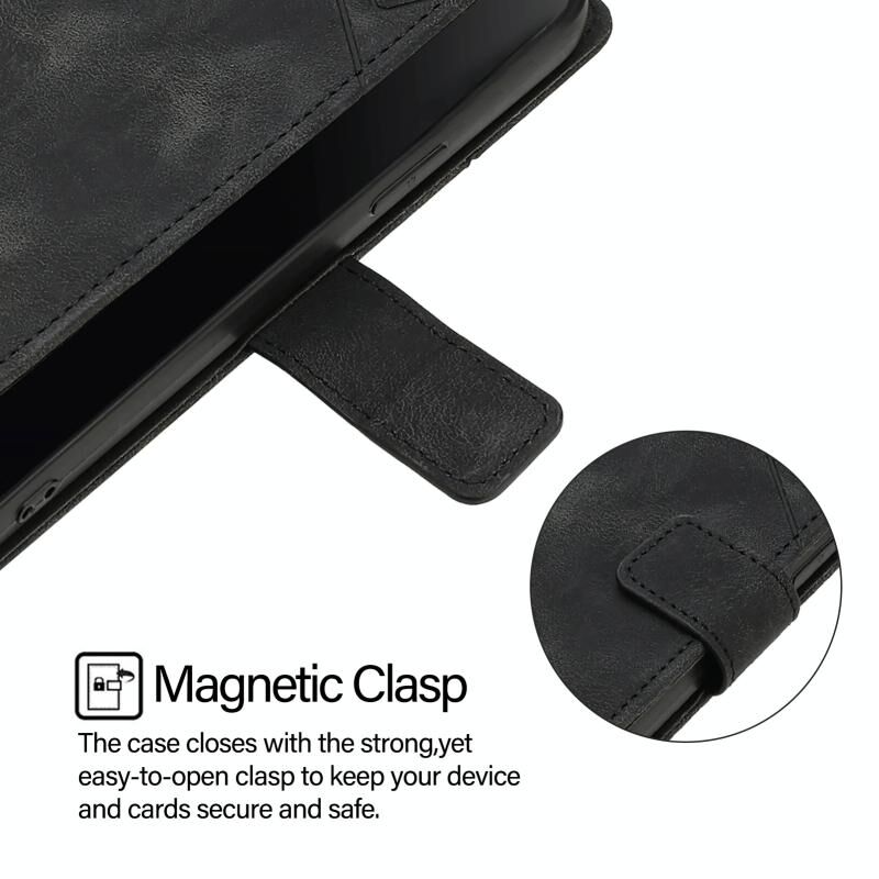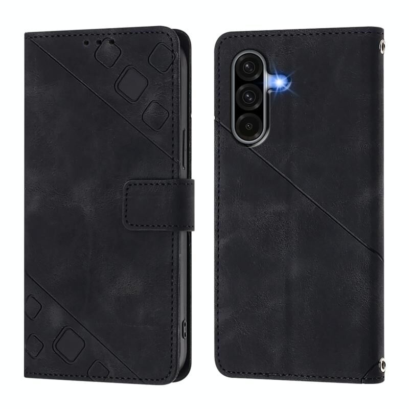 Για Samsung Galaxy A56 5G Skin-feel ανάγλυφη δερμάτινη θήκη τηλεφώνου (μαύρο)