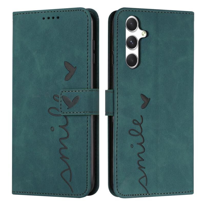 Θήκη τηλεφώνου Samsung Galaxy A56 5G με δερμάτινη υφή, ανάγλυφο σχέδιο καρδιάς και μακρύ κορδόνι (Πράσινο)