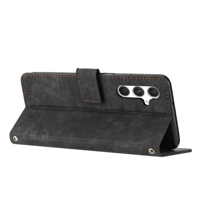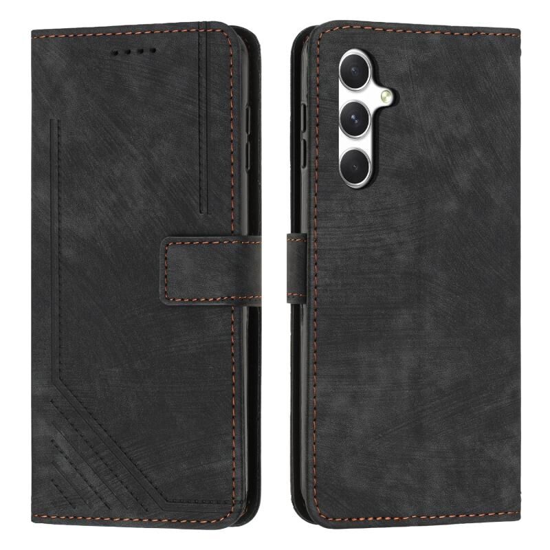 Για Samsung Galaxy A56 5G δέρμα αίσθηση λωρίδα μοτίβο δερμάτινη θήκη τηλεφώνου με μακρύ κορδόνι (μαύρο)