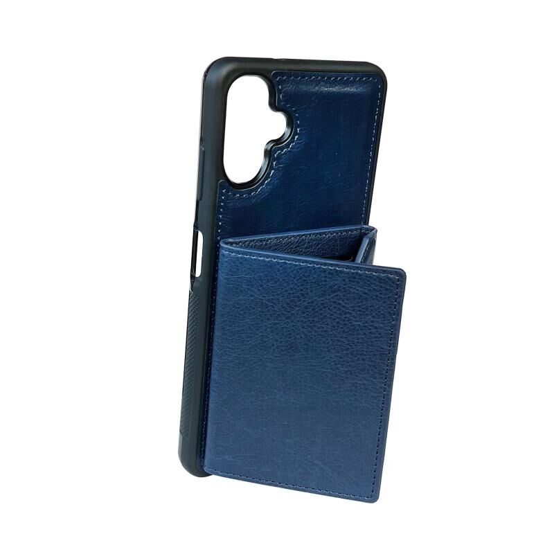 Θήκη τηλεφώνου για Samsung Galaxy A56 5G με μονόχρωμη μεταλλική αγκράφα και θήκες για κάρτες (Μπλε)