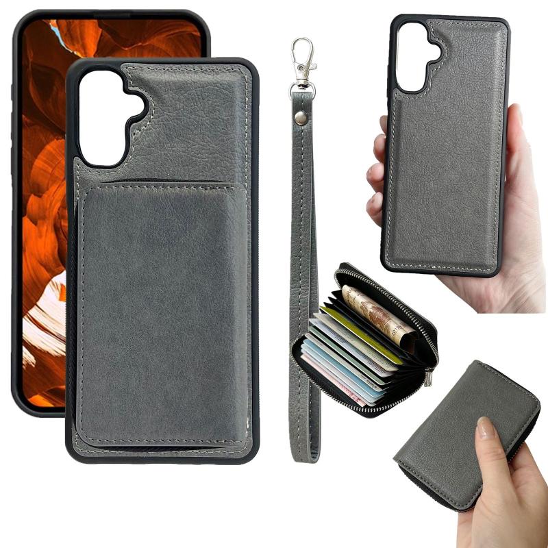 For Samsung Galaxy A56 5G Solid Color Zipper 11-Card Slots Bag Phone Case with Lanyard(Grey)