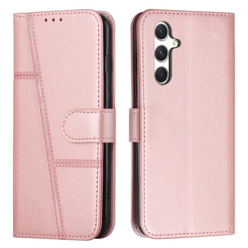 Για Samsung Galaxy A56 5G ραφή μοσχάρι υφή πόρπη δερμάτινη θήκη τηλεφώνου (Rose Gold)