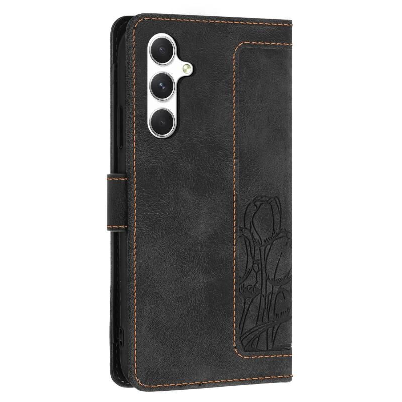 Θήκη τηλεφώνου δερμάτινη με ανάγλυφα τουλίπες και λουρί για Samsung Galaxy A56 5G (Πράσινο)