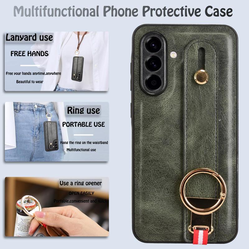 For Samsung Galaxy A56 5G Wristband Leather Back Phone Case(Green)