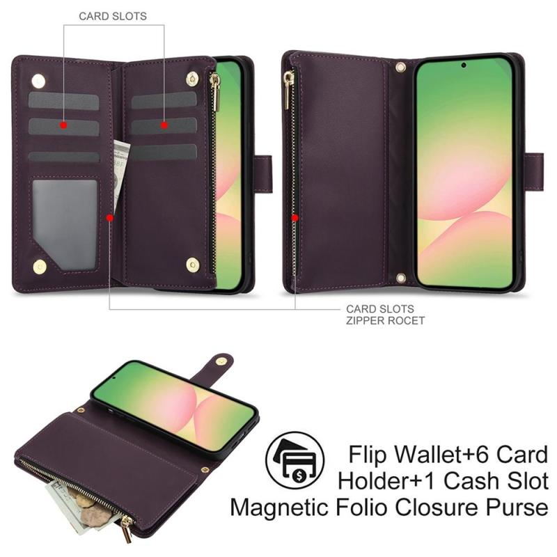 5. Multi-card Wallet Function: multiple card slots and zipper wallet pockets, cash compartments can store your credit cards and daily small bills.