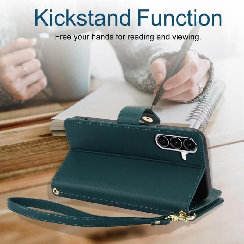 Θήκη τηλεφώνου Samsung Galaxy A56 5G YM016 με φερμουάρ, σχέδιο ρόμβου, δερμάτινη με θηλάκι (πράσινο)