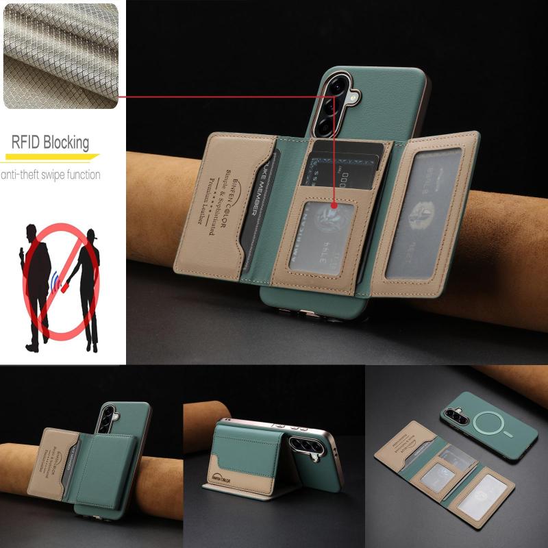 For Samsung Galaxy A56 Colour Matching Horizontal Magnetic Card Bag RFID MagSafe Phone Case(Green)