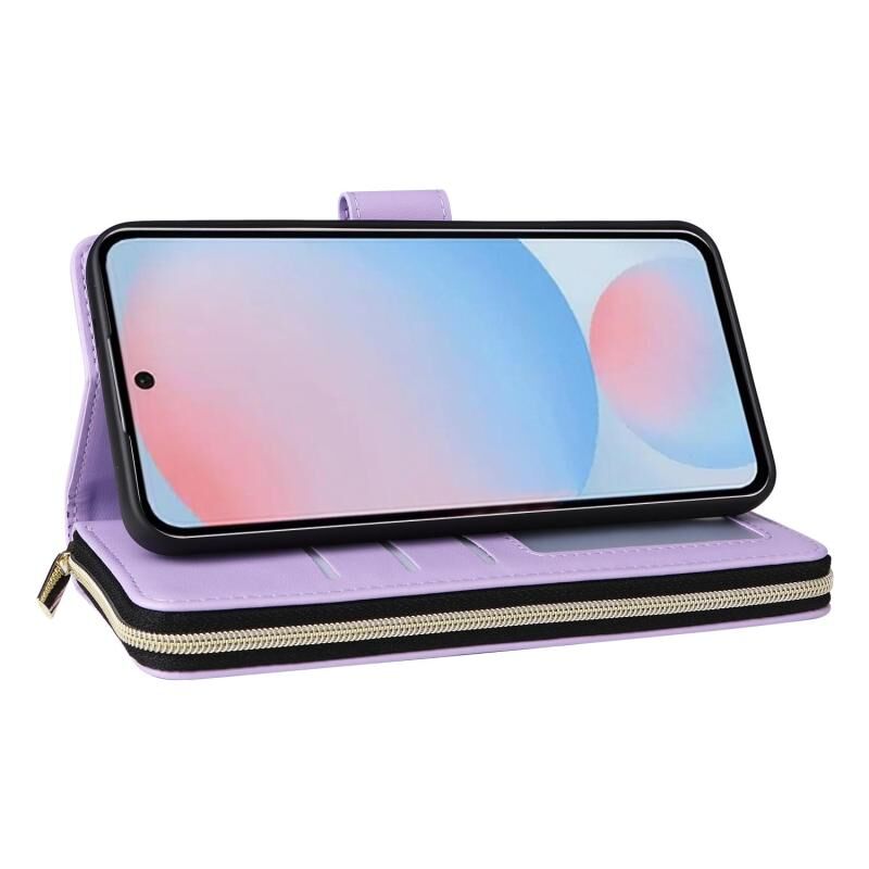Για Samsung Galaxy A56 Εννέα-κάρτα Slots φερμουάρ πορτοφόλι τσάντα δερμάτινη θήκη τηλεφώνου (μωβ)