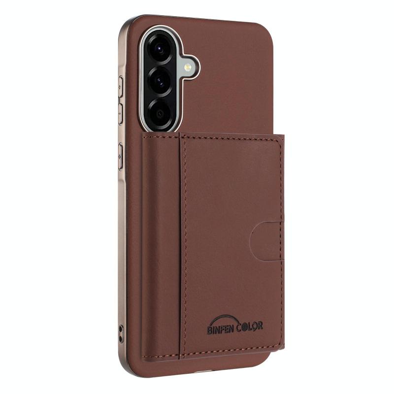 For Samsung Galaxy A56 Solid Color Horizontal Magnetic Card Bag RFID MagSafe Phone Case(Brown)