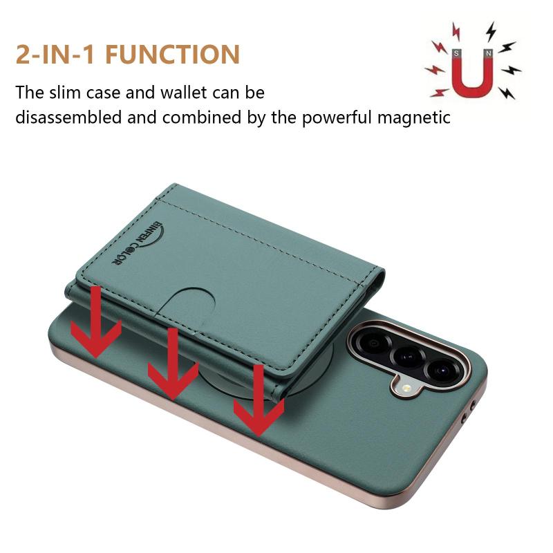 For Samsung Galaxy A56 Solid Color Horizontal Magnetic Card Bag RFID MagSafe Phone Case(Green)