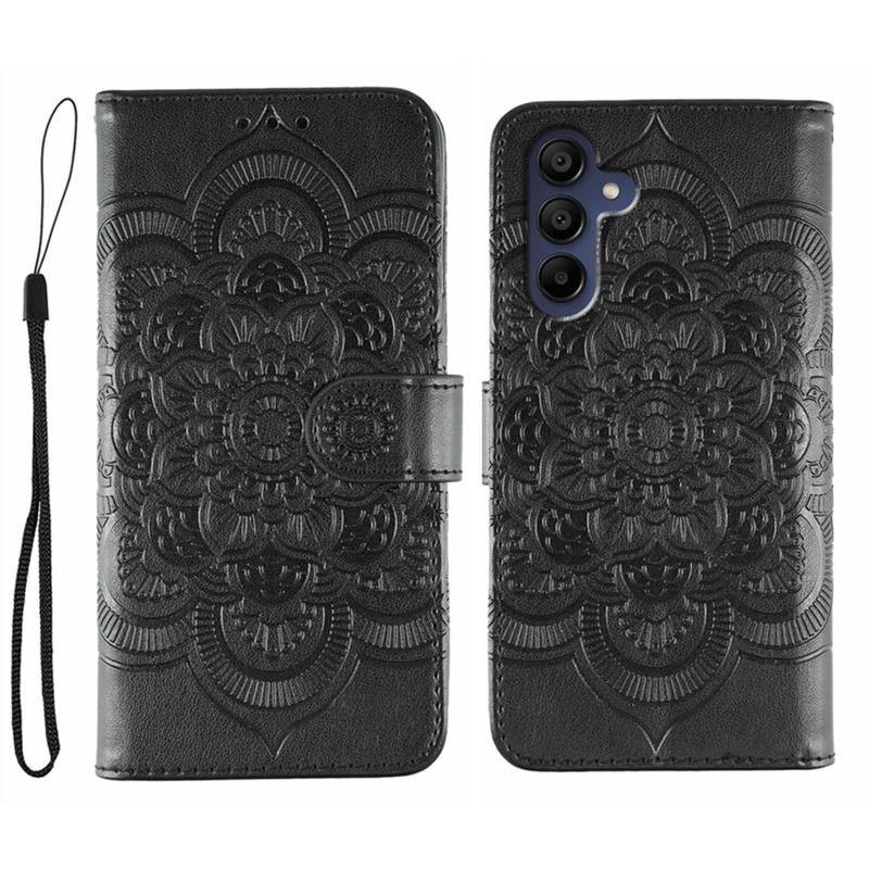 Θήκη δερμάτινη για Samsung Galaxy A56 με σχέδιο Sun Mandala σε ανάγλυφο (Γκρι)