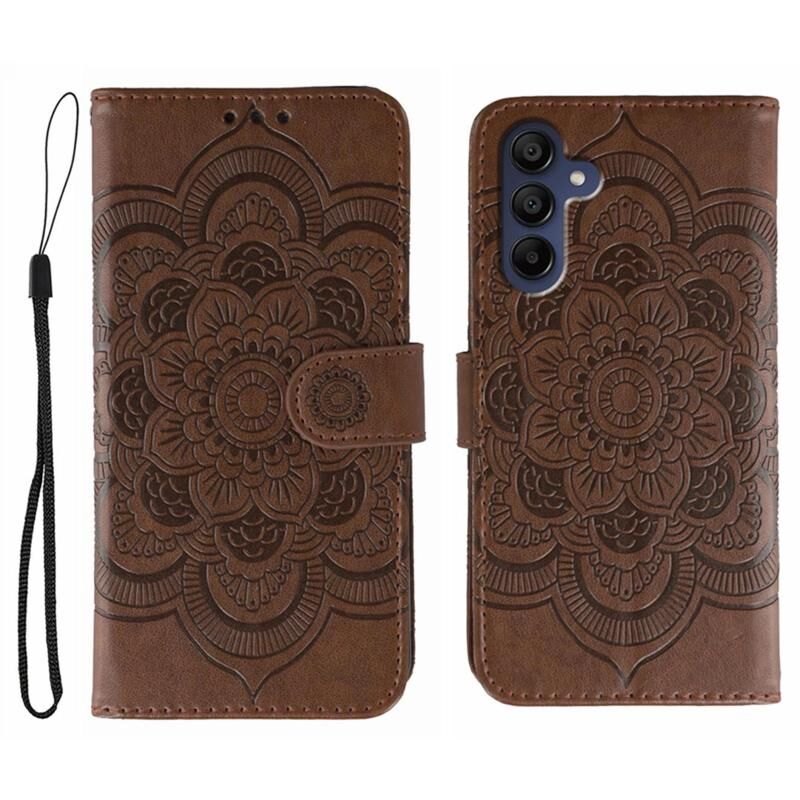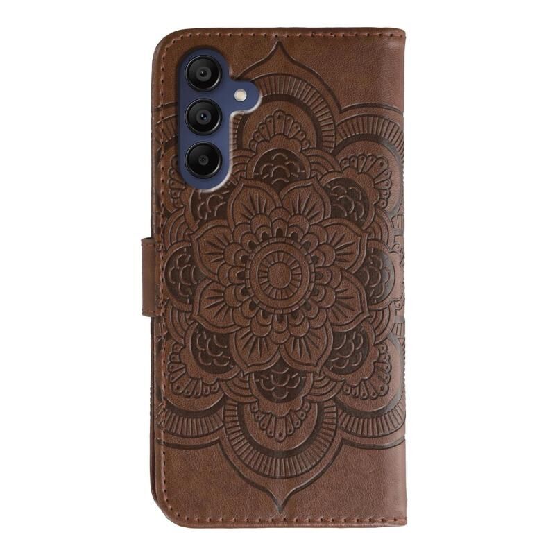 Θήκη δερμάτινη για Samsung Galaxy A56 με σχέδιο Sun Mandala σε ανάγλυφο (Καφέ)