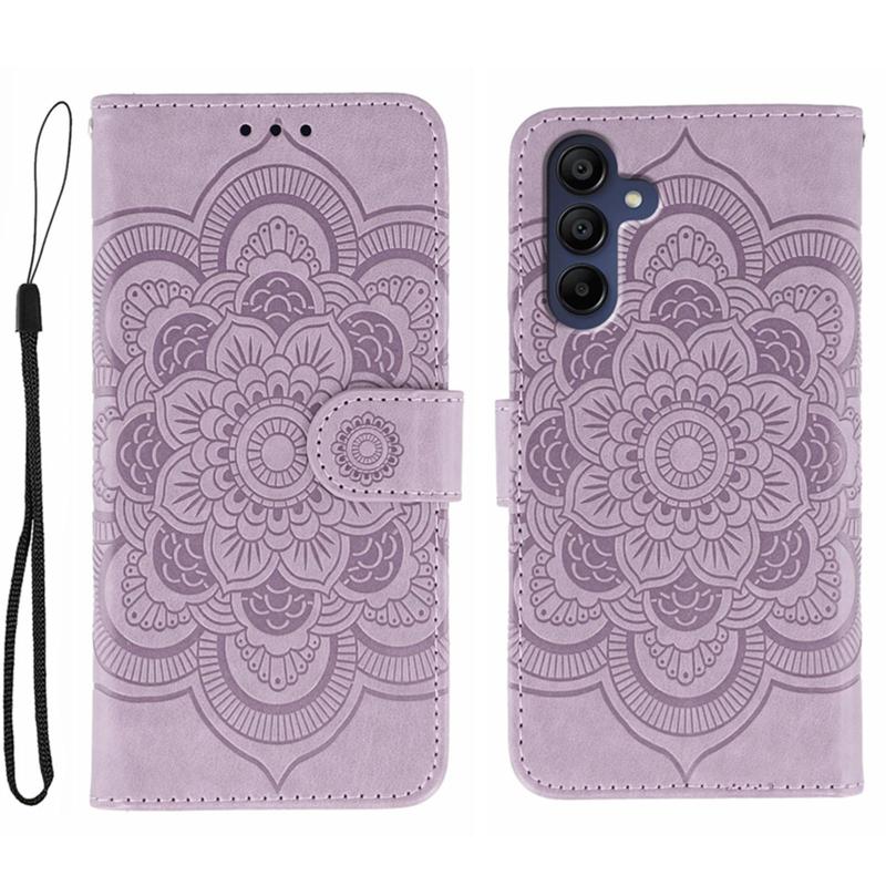 For Samsung Galaxy A56 Sun Mandala Embossing Pattern Phone Leather Case(Purple)