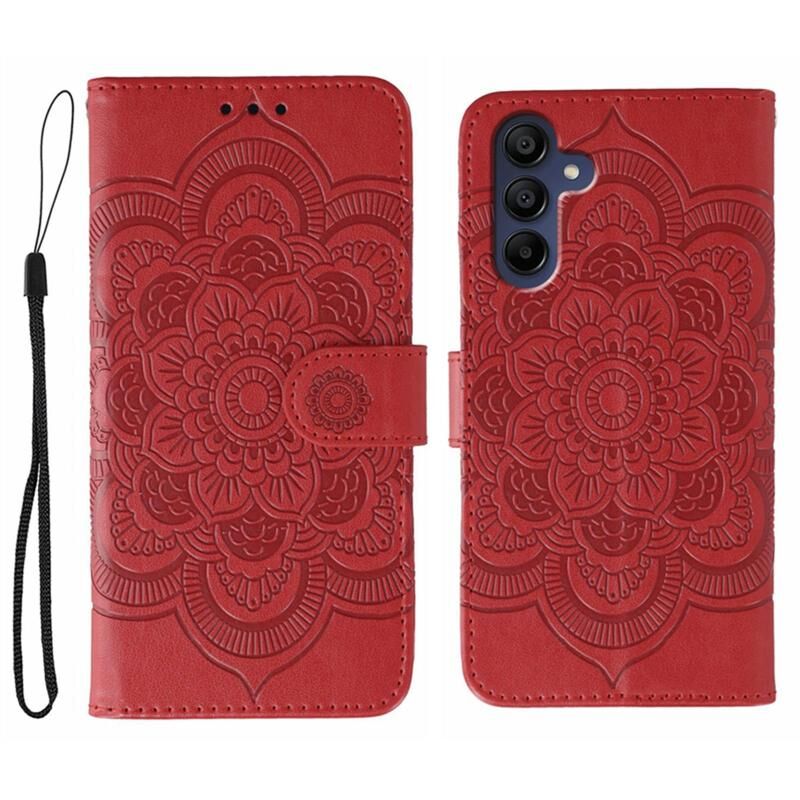 Θήκη δερμάτινη για Samsung Galaxy A56 με σχέδιο Sun Mandala σε ανάγλυφο (Κόκκινο)