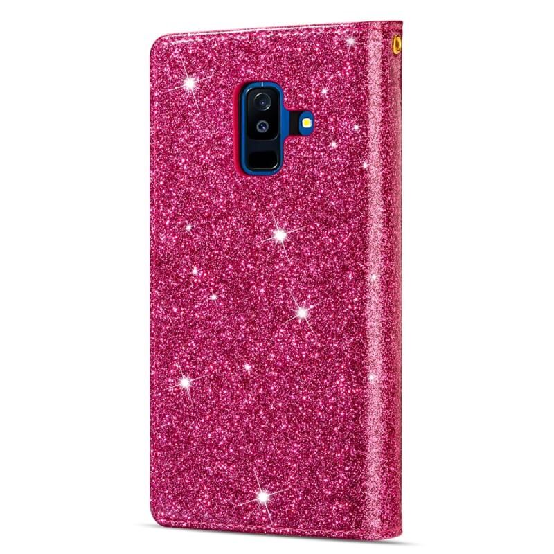 Για Samsung Galaxy A6 (2018) Θήκη πολλαπλών καρτών με σχέδιο αστρικού ουρανού, χάραξη laser, γκλίτερ, οριζόντια θήκη flip από δέρμα με βάση στήριξης & πορτοφόλι & λουρί (Μωβ)