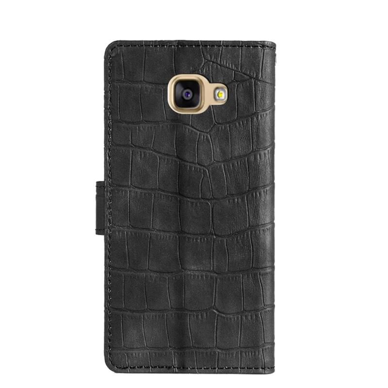 Θήκη για Samsung Galaxy A7 (2016) A710 με υφή δέρματος κροκόδειλου, μαγνητικό κούμπωμα, οριζόντια αναδιπλούμενη από δερματίνη PU με βάση & υποδοχές καρτών & πορτοφόλι (Μαύρο)
