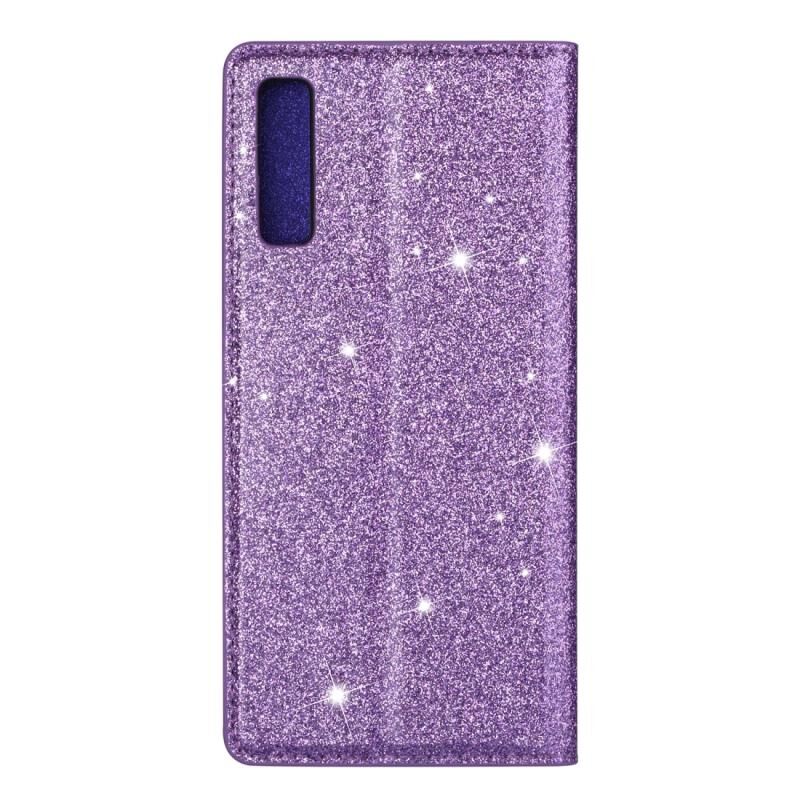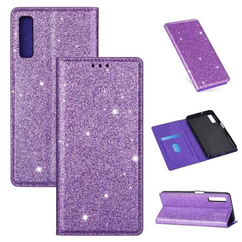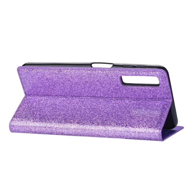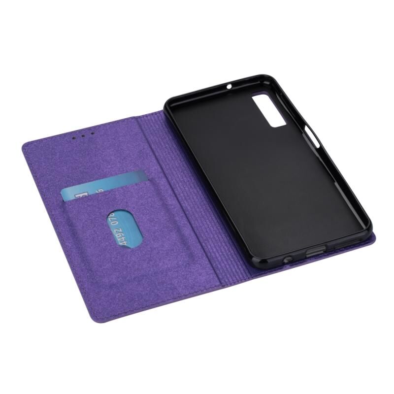 Θήκη δέρματος οριζόντιας αναδίπλωσης με μαγνήτη και λάμψη, εξαιρετικά λεπτή για Samsung Galaxy A7 (2018) / A750 με βάση & υποδοχές καρτών (Μωβ)