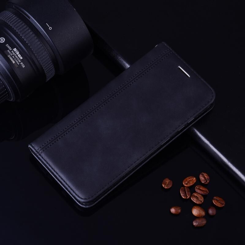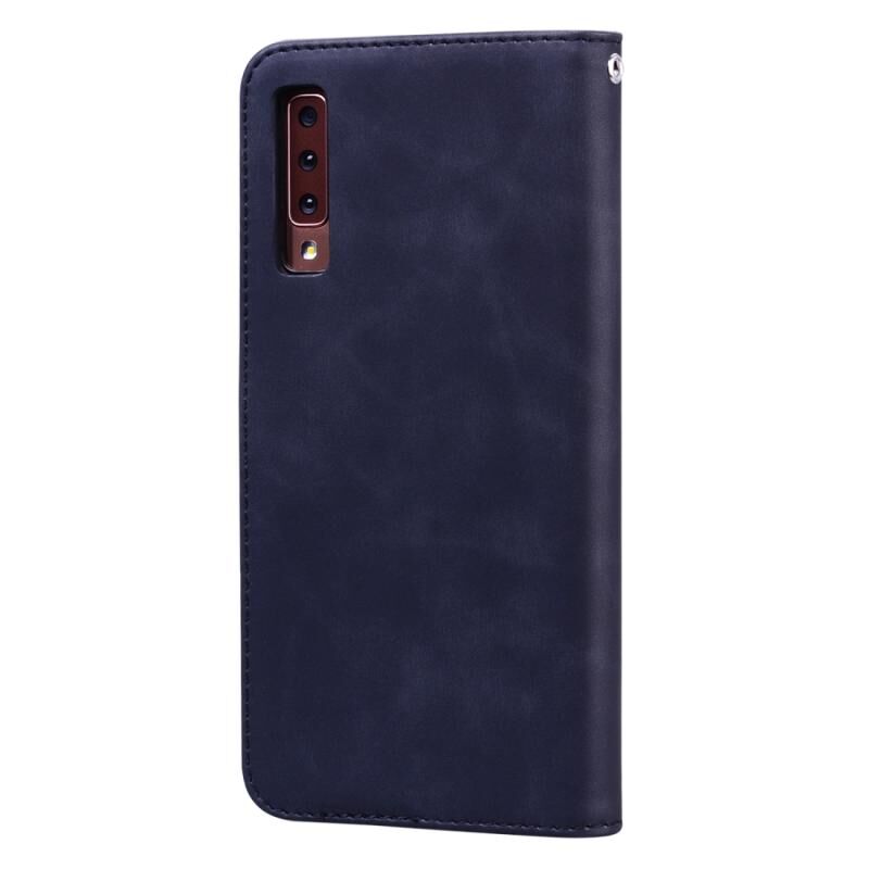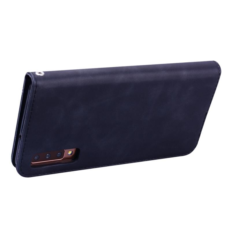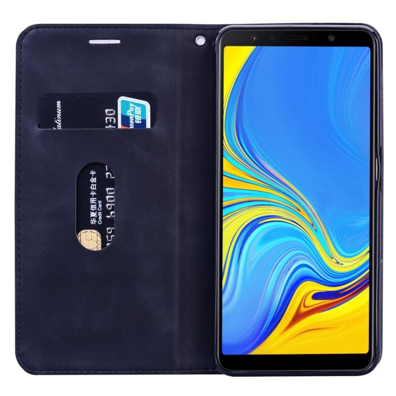 Για Samsung Galaxy A7 (2018) Frosted Business Μαγνητική Οριζόντια Flip PU δέρμα θήκη με θήκη & υποδοχή για κάρτες & κορδόνι (Μαύρο)