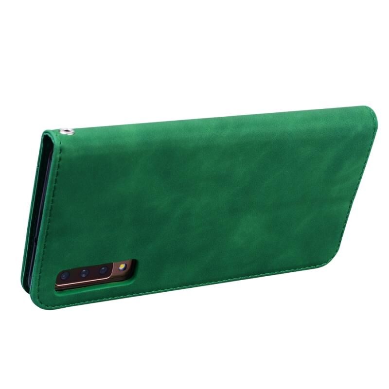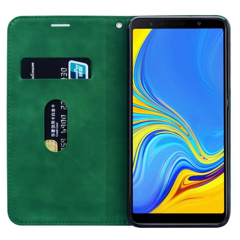 Για Samsung Galaxy A7 (2018) Frosted Business Μαγνητική Οριζόντια Flip PU Δερμάτινη θήκη με θήκη για κάρτες & υποδοχή & κορδόνι (πράσινο)