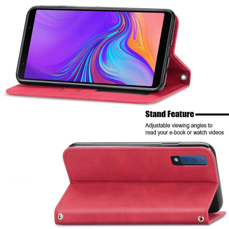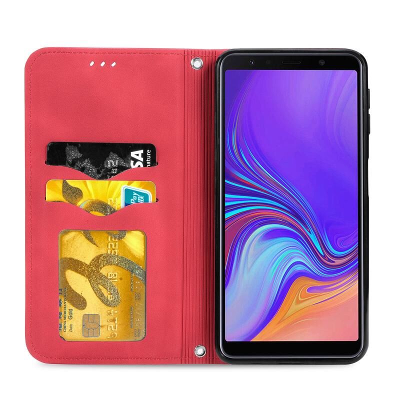Θήκη Samsung Galaxy A7 2018, Δερμάτινη Μαγνητική Οριζόντια Flip με Υφή Retro, με Θήκη, Θήκες Καρτών, Πορτοφόλι & Κορνίζα Φωτογραφιών (Μαύρο)