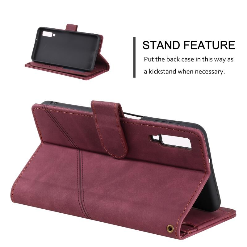 Για το Samsung Galaxy A7 2018 Skin Feel Business Οριζόντια Flip PU δερμάτινη θήκη με θήκη & υποδοχές πολλαπλών καρτών & πορτοφόλι & κορδόνι & κορνίζα (κόκκινο κρασί)