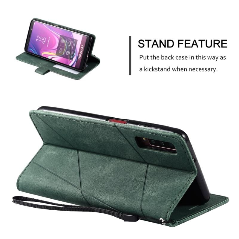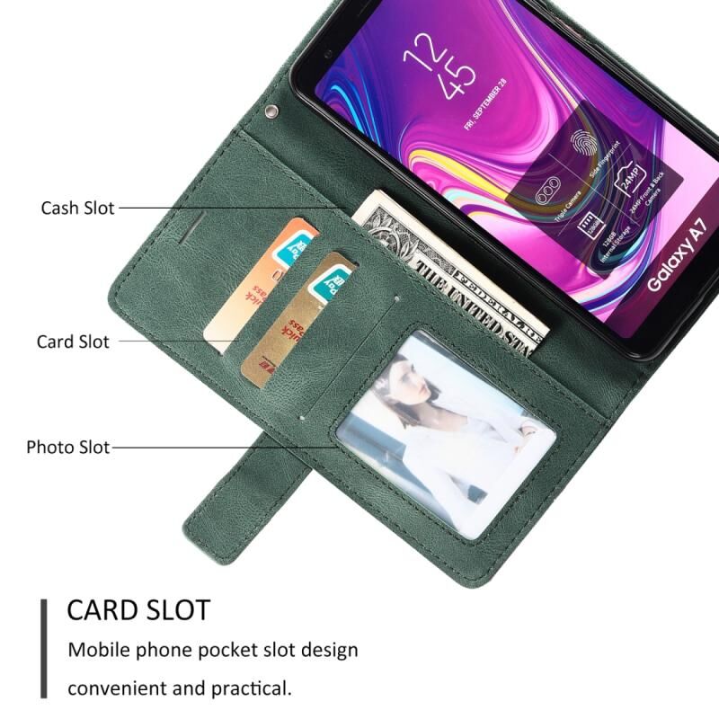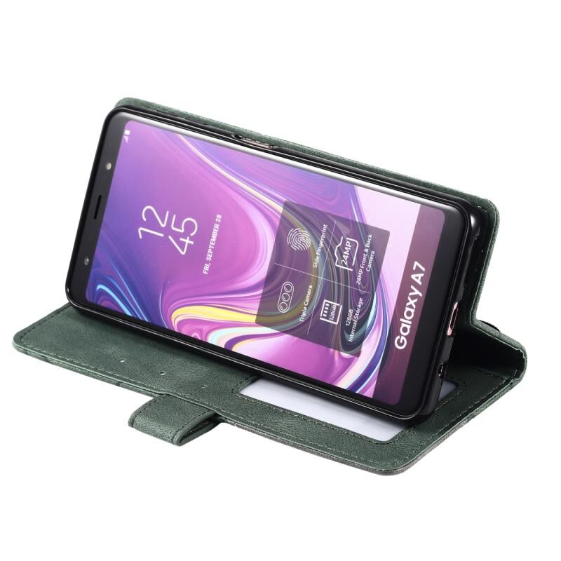 Για Samsung Galaxy A7(2018) Skin Feel Splicing οριζόντια Flip δερμάτινη θήκη με θήκη & υποδοχές καρτών & πορτοφόλι & πλαίσιο φωτογραφιών (πράσινο)