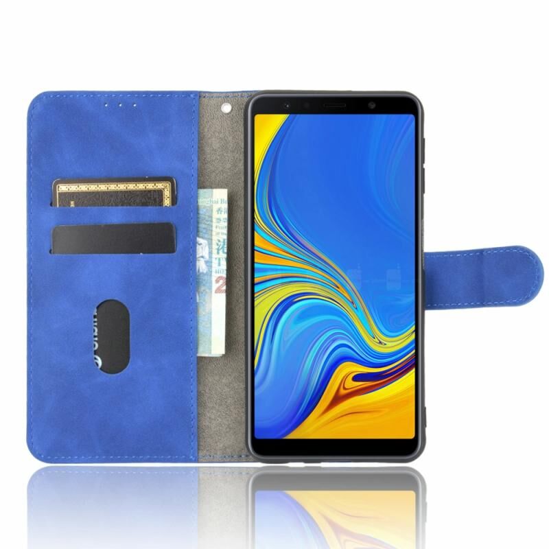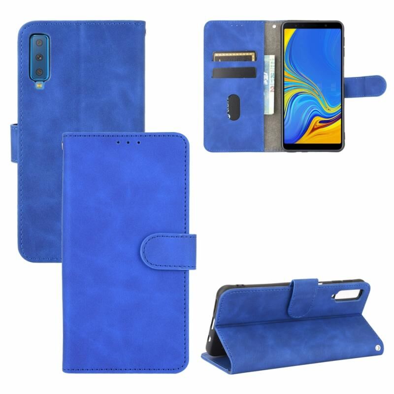Θήκη για Samsung Galaxy A7 (2018) με μαγνητικό κούμπωμα, οριζόντια, με υφή δέρματος μοσχαριού, από PU δέρμα σε μονόχρωμο χρώμα, με βάση & θήκες για κάρτες & πορτοφόλι (Μπλε)