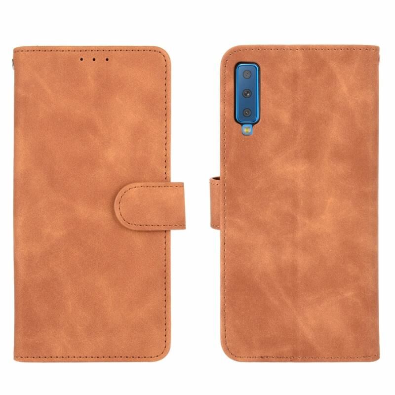 Θήκη για Samsung Galaxy A7 (2018) με μαγνητικό κούμπωμα, οριζόντια, με υφή δέρματος μοσχαριού, από PU δέρμα σε μονόχρωμο χρώμα, με βάση & θήκες για κάρτες & πορτοφόλι (Καφέ)
