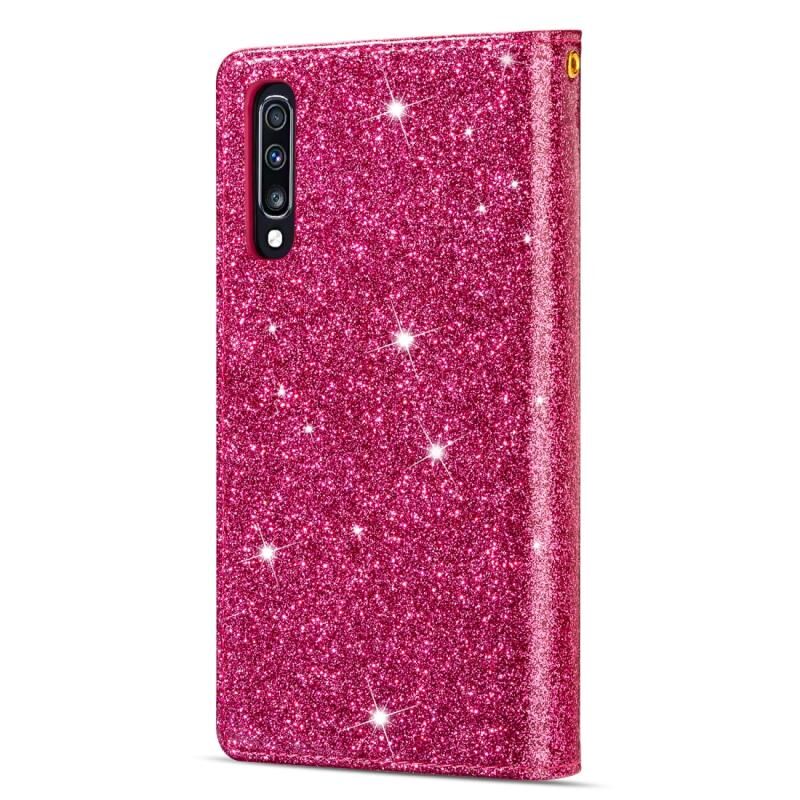 Για Samsung Galaxy A70 / A70s Θήκη πολλαπλών καρτών με σχέδιο αστερόσκονης, χάραξη laser, γκλίτερ, οριζόντια θήκη flip από δέρμα με βάση στήριξης & πορτοφόλι & λουρί (Μωβ)