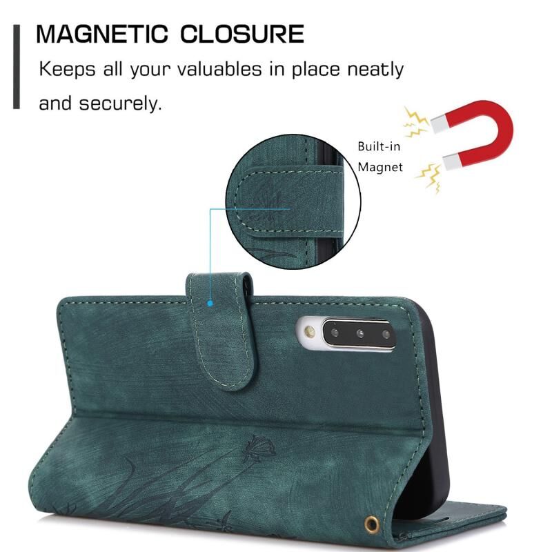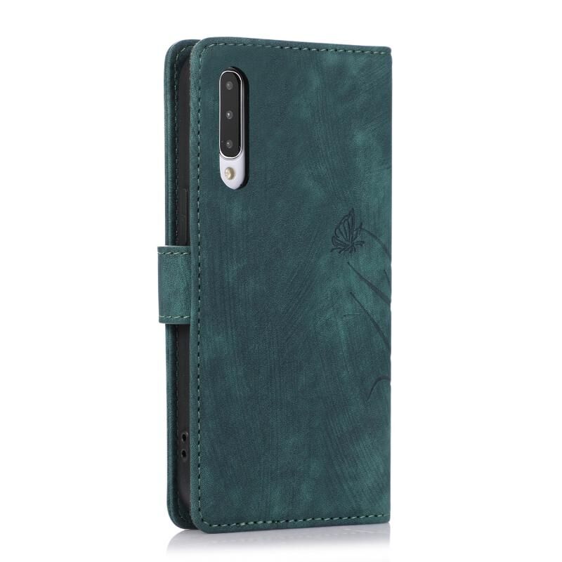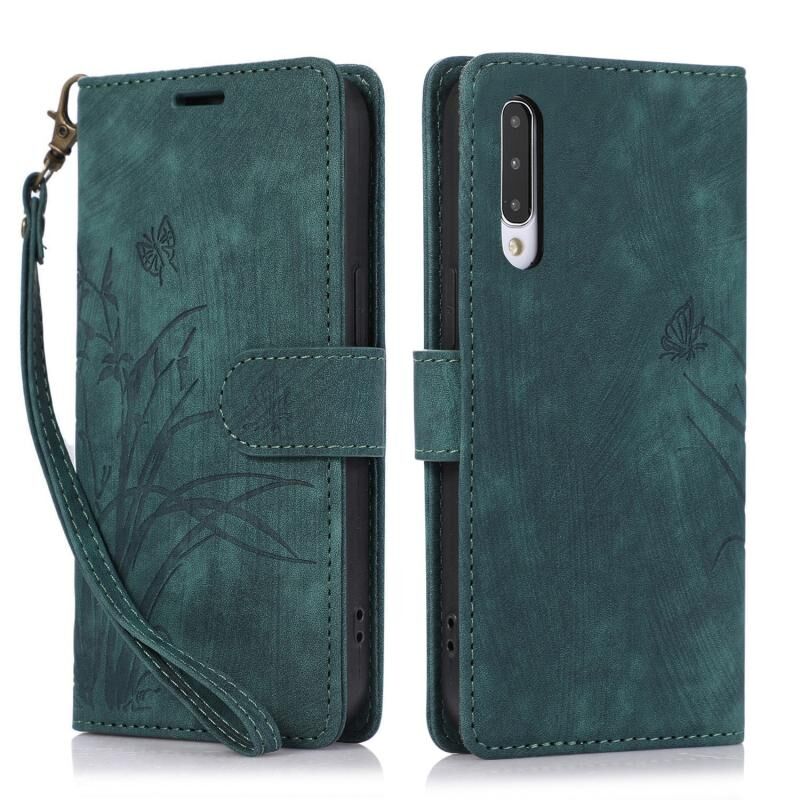 Θήκη τηλεφώνου δερμάτινη ανάγλυφη με σχέδιο ορχιδέας και πεταλούδας για Samsung Galaxy A70 / A70s (πράσινο)