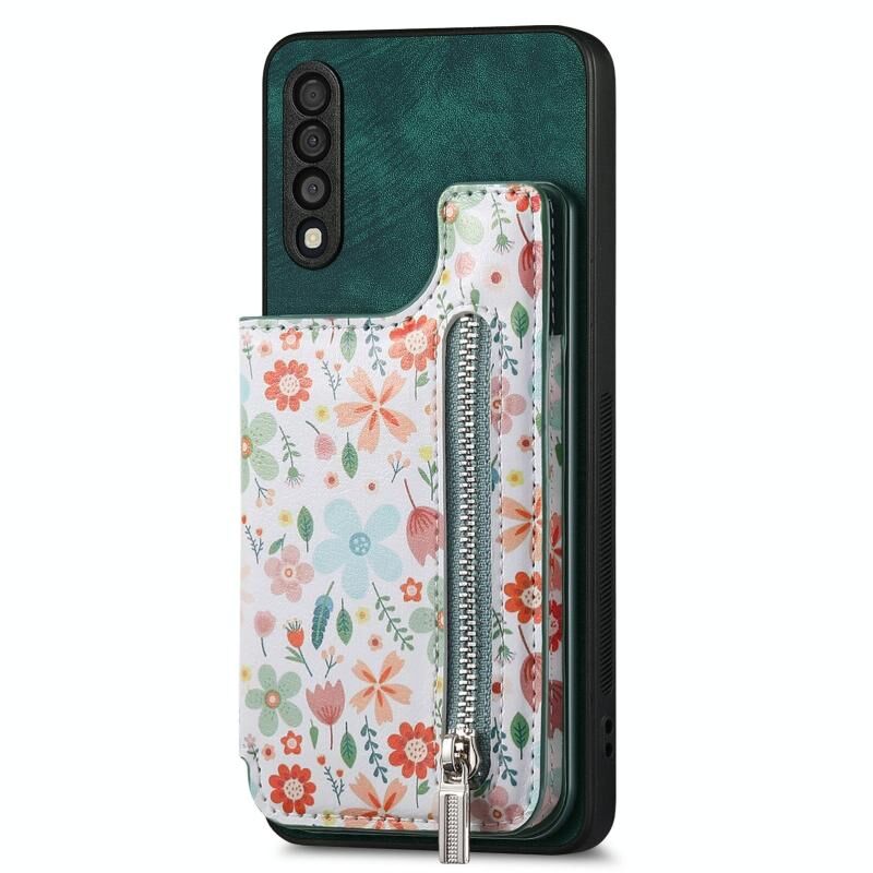 Για Samsung Galaxy A70/A70s Ρετρό ζωγραφισμένο φερμουάρ πορτοφόλι πίσω υπόθεση τηλεφώνου (πράσινο)