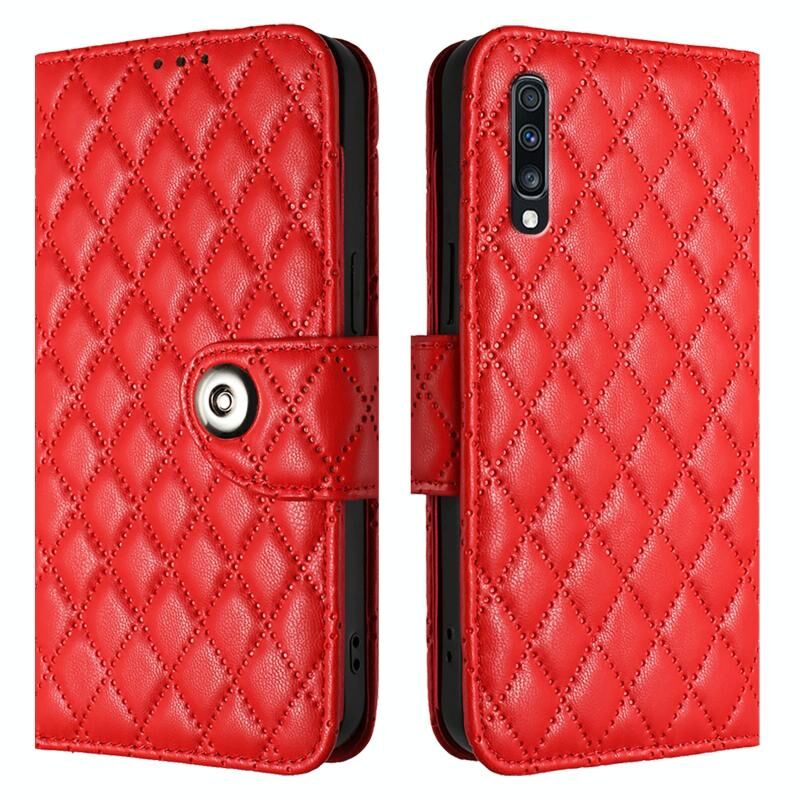 Για Samsung Galaxy A70 / A70s Ρομβική υφή Flip δερμάτινη θήκη τηλεφώνου με κορδόνι (κόκκινο)
