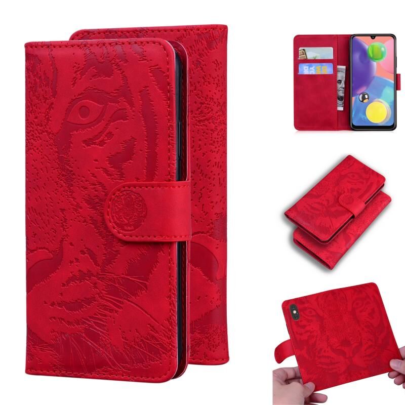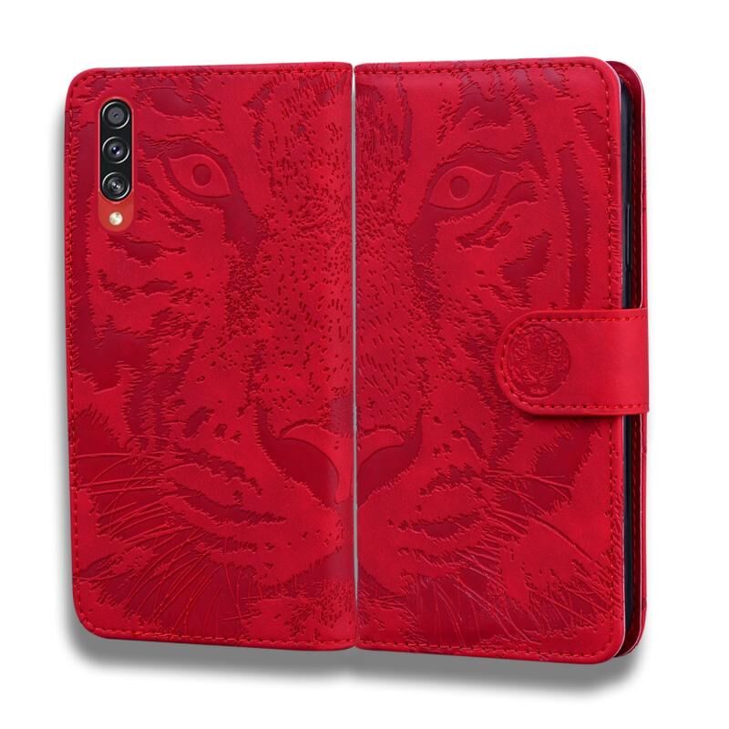 Θήκη δέρματος οριζόντιας αναδίπλωσης με ανάγλυφο μοτίβο τίγρης για Samsung Galaxy A70 / A70s με βάση & υποδοχές καρτών & πορτοφόλι (Καφέ)