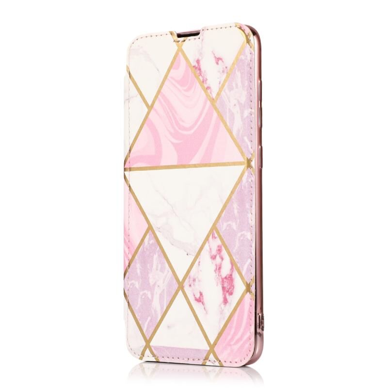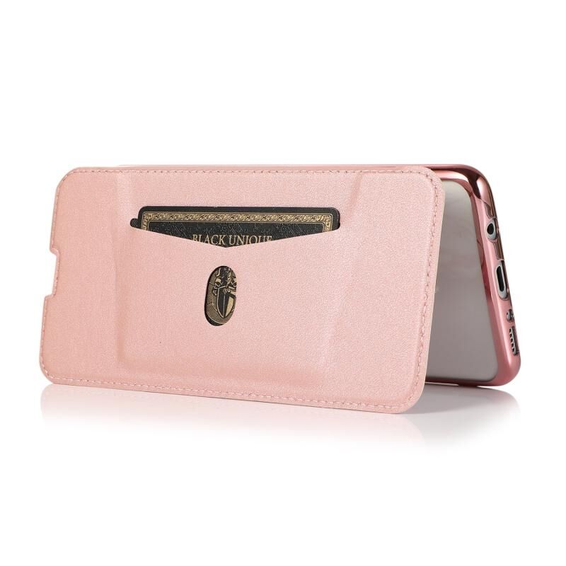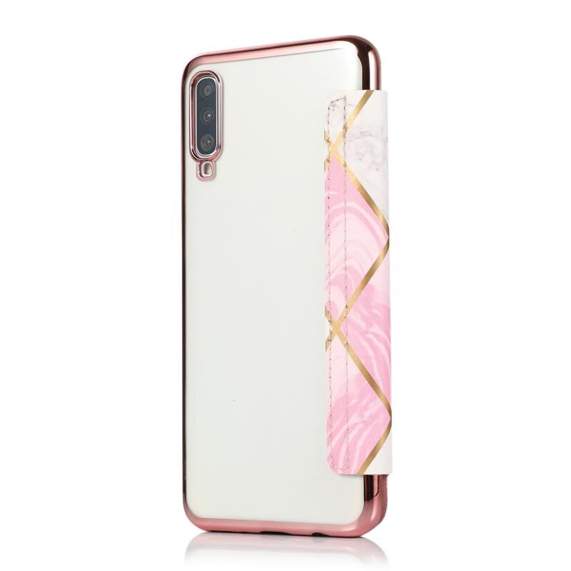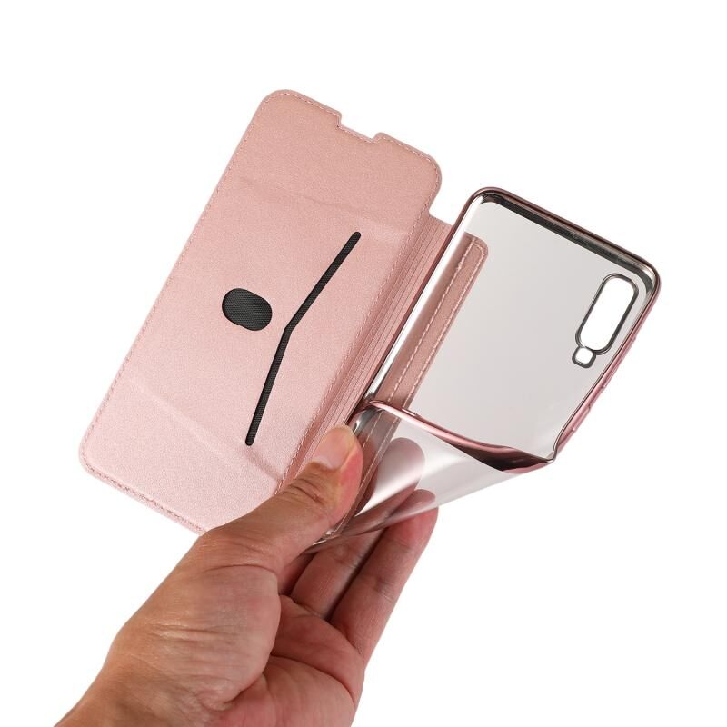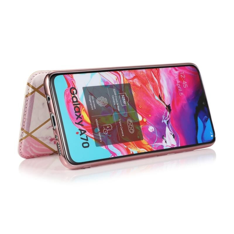 Θήκη δέρματος οριζόντιας αναδίπλωσης PU + TPU με επιμετάλλωση μπρούντζου για Samsung Galaxy A70 με βάση & υποδοχή κάρτας (Μαύρο)