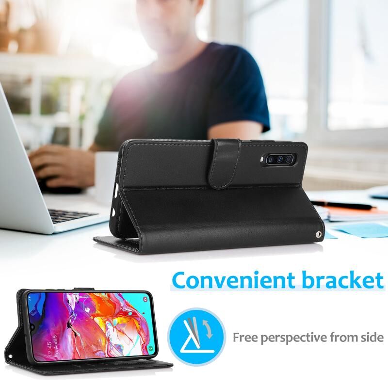 Για Samsung Galaxy A70 Calf Texture 2 σε 1 Αποσπώμενο μαγνητικό πίσω κάλυμμα οριζόντια Flip δερμάτινη θήκη με θήκη & υποδοχές για κάρτες & πορτοφόλι & κορνίζα φωτογραφιών (Μαύρο)