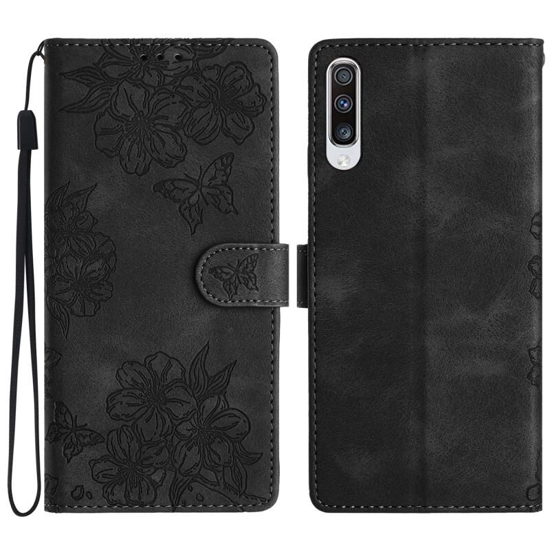 Θήκη κινητού τηλεφώνου Samsung Galaxy A70 Cherry Blossom Butterfly Skin Feel Embossed PU (Κόκκινη)