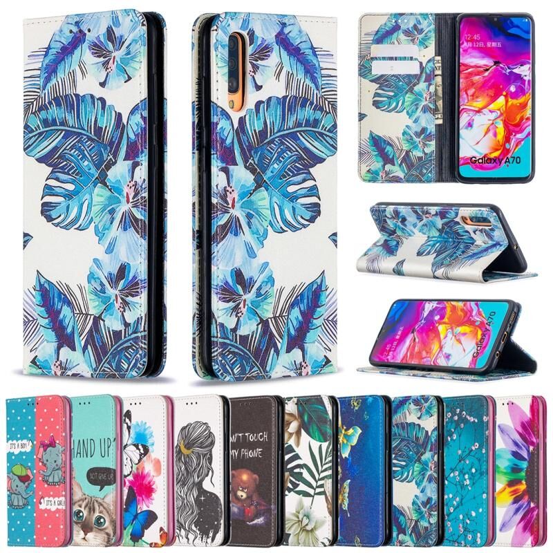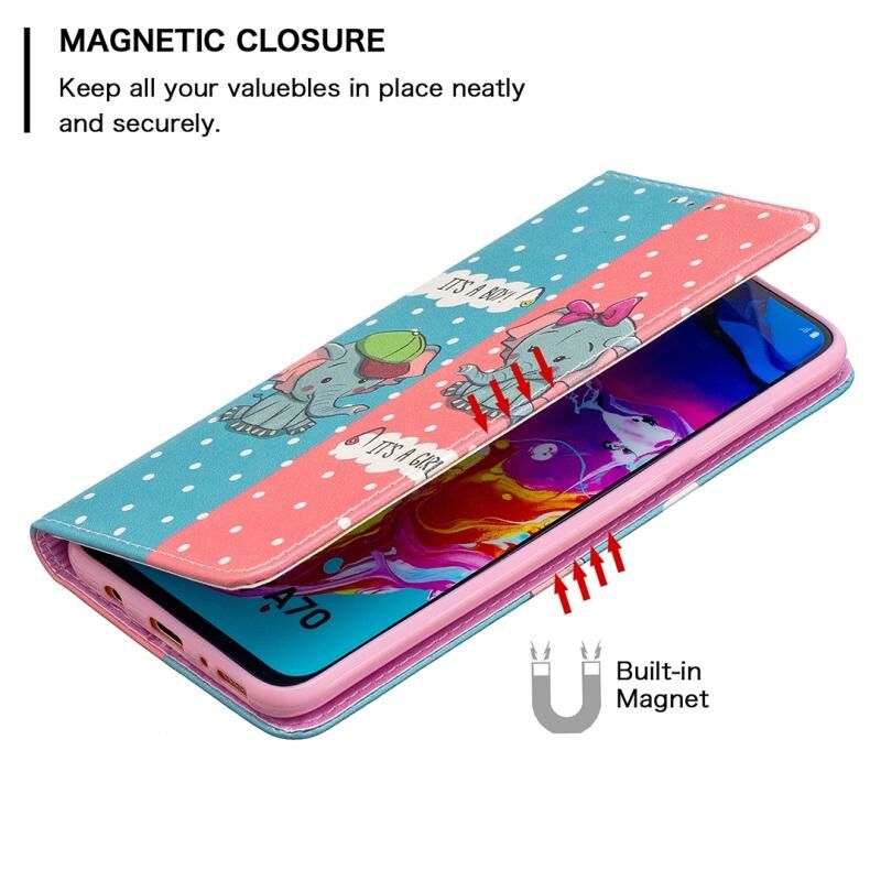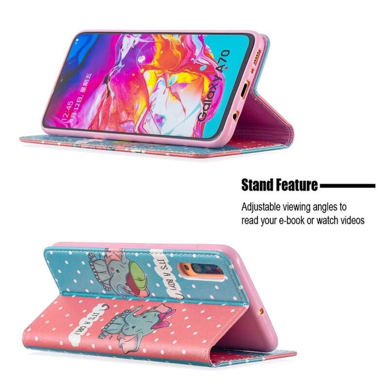 Θήκη Samsung Galaxy A70, πολύχρωμη με σχέδιο, αόρατη μαγνητική οριζόντια θήκη από δερματίνη PU με βάση & θήκες για κάρτες & πορτοφόλι (Ελέφαντας)