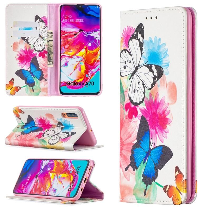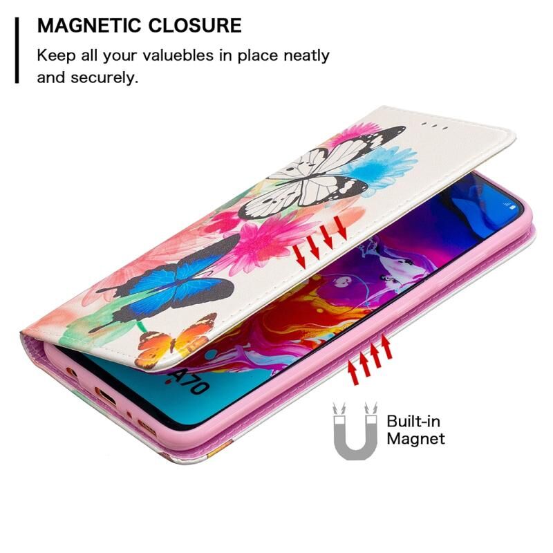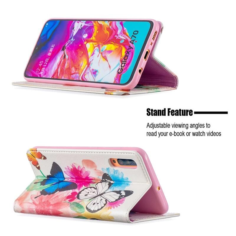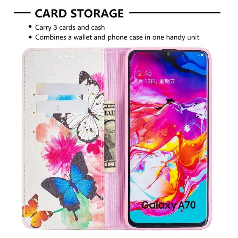 Θήκη Samsung Galaxy A70, πολύχρωμη με σχέδιο, αόρατη μαγνητική οριζόντια από δερματίνη PU με βάση & θήκες για κάρτες & πορτοφόλι (Κόκκινο)