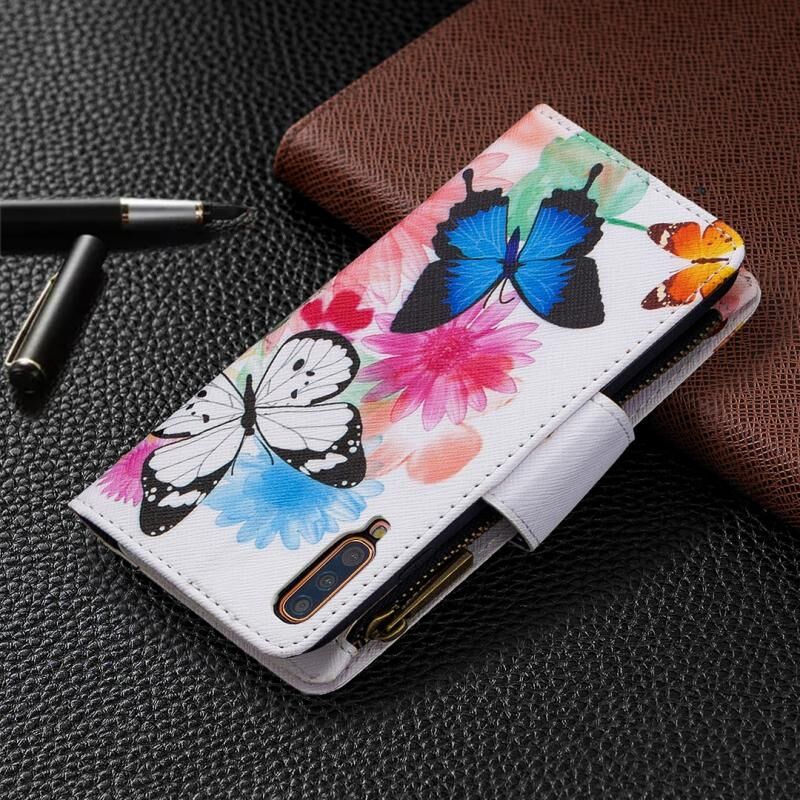 Θήκη Samsung Galaxy A70 Δερμάτινη Οριζόντια με Φερμουάρ, Πολύχρωμο Σχέδιο Ζωγραφικής, με Θήκη & Θήκες Καρτών & Πορτοφόλι (Δύο Πεταλούδες)