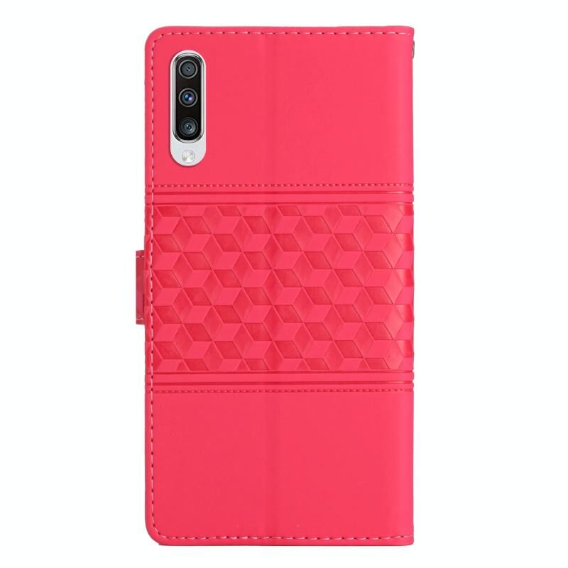 Για Samsung Galaxy A70 Diamond ανάγλυφο δέρμα αίσθηση δέρμα τηλέφωνο υπόθεση με κορδόνι (Κόκκινο)