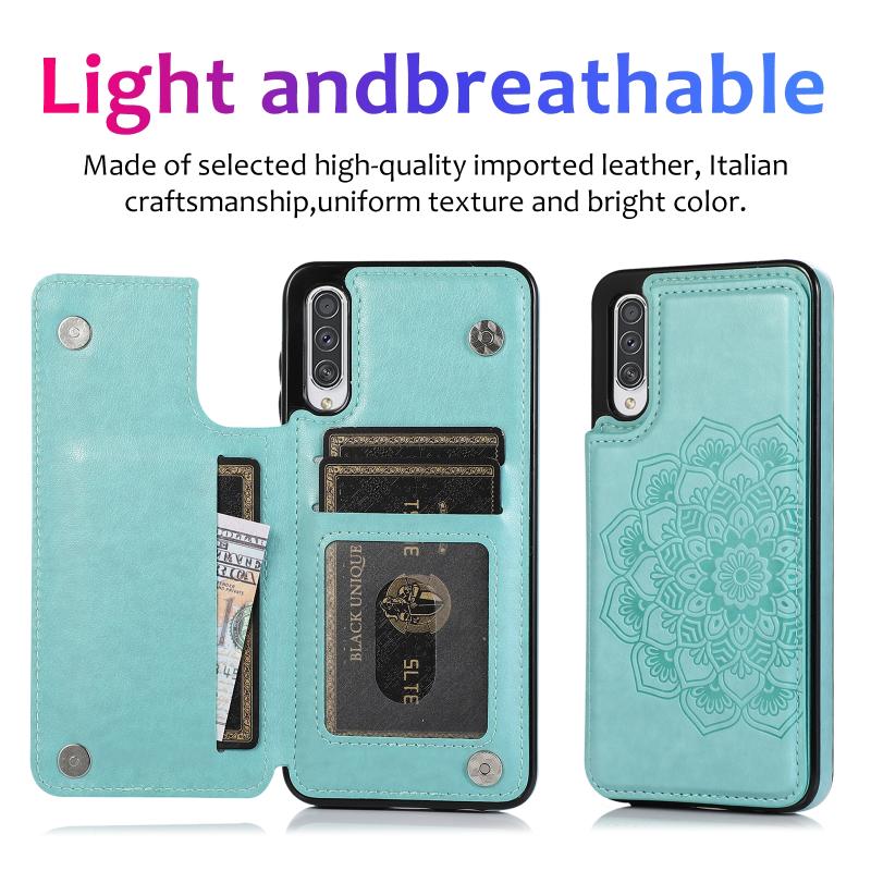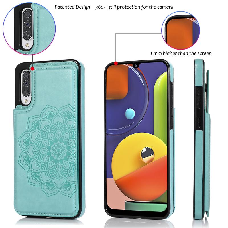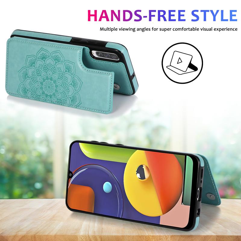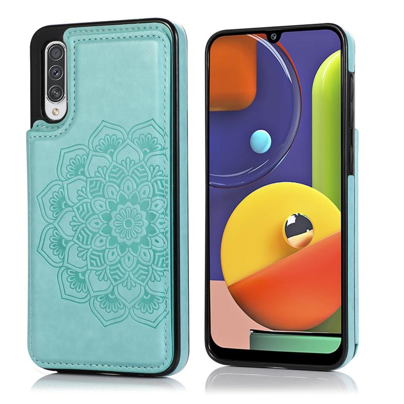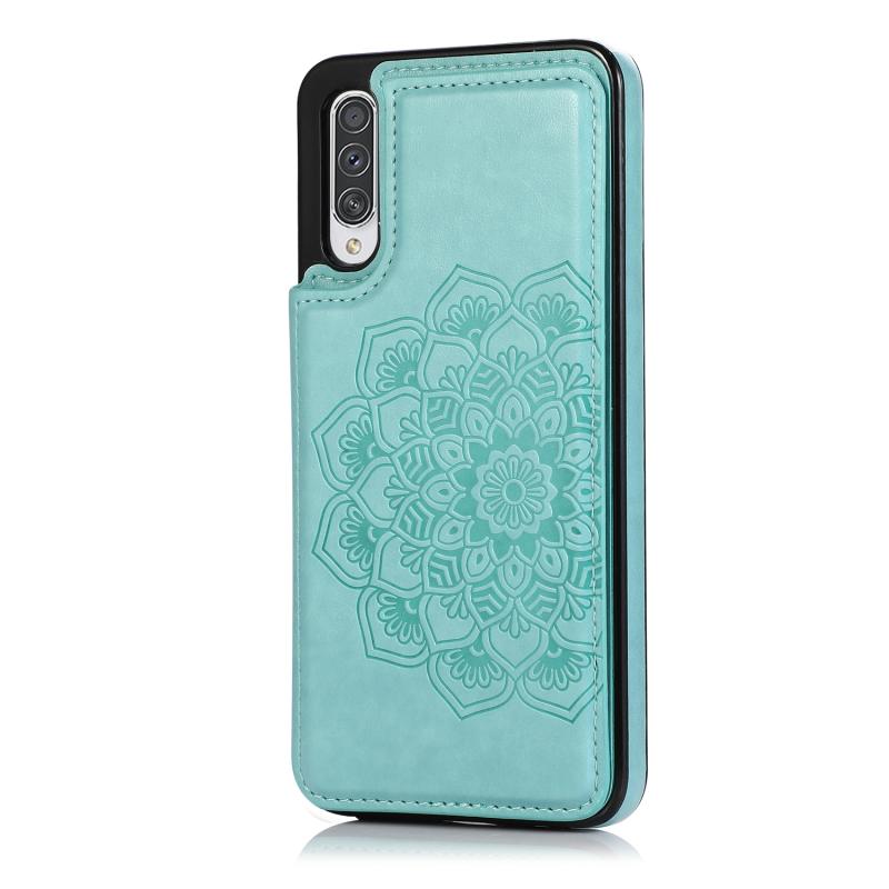 For Samsung Galaxy A70 Double Buckle Mandala Pattern PU+TPU Protective Case with Card Slots & Holder & Photo Frame(Green)