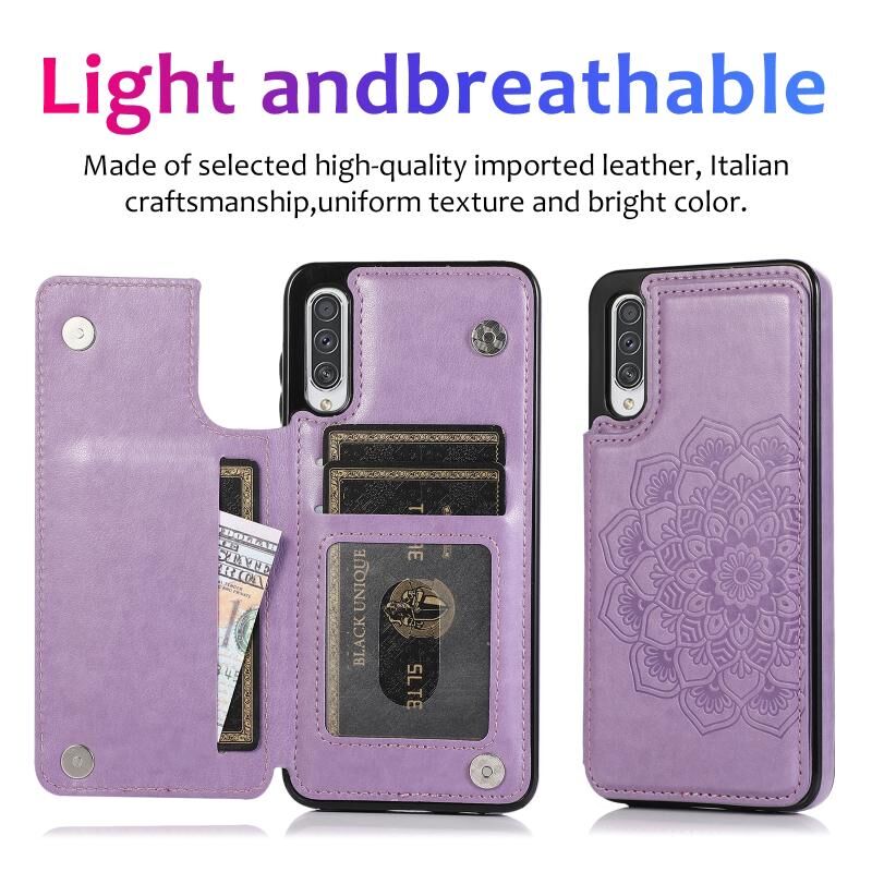 Θήκη προστασίας για Samsung Galaxy A70, διπλή αγκράφα, σχέδιο Mandala, PU+TPU με θήκες καρτών & βάση στήριξης & κορνίζα φωτογραφιών (Μωβ)