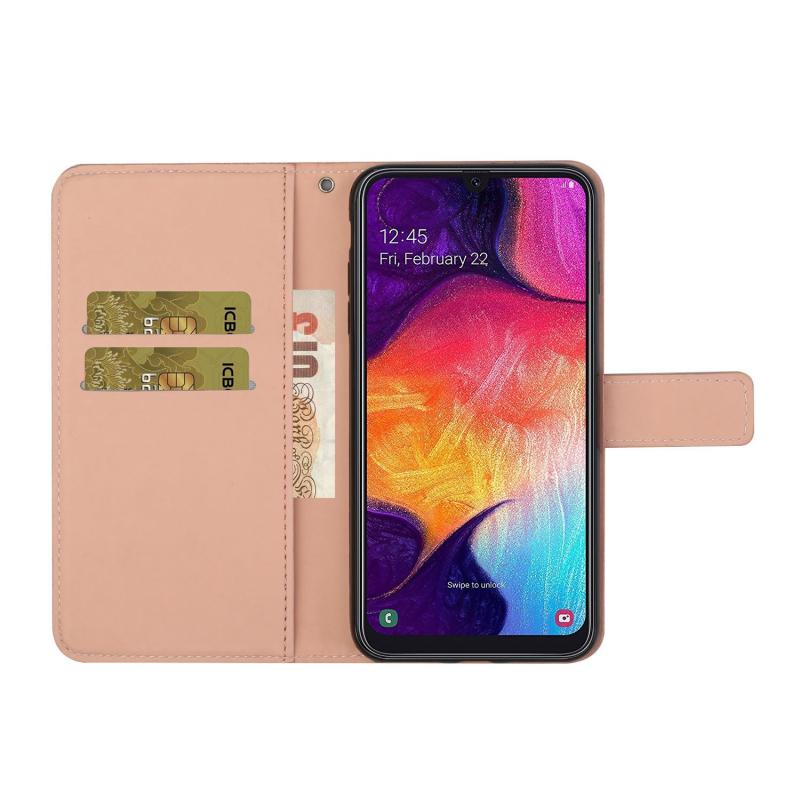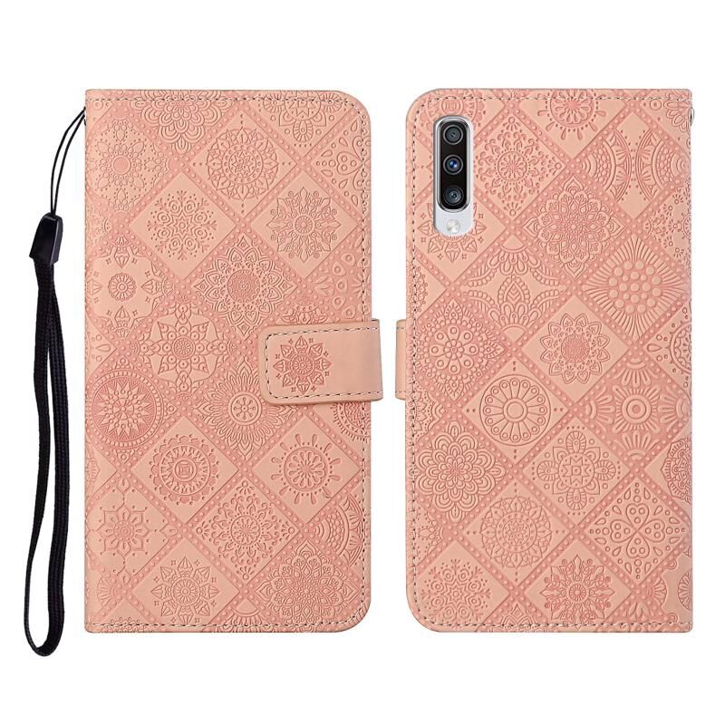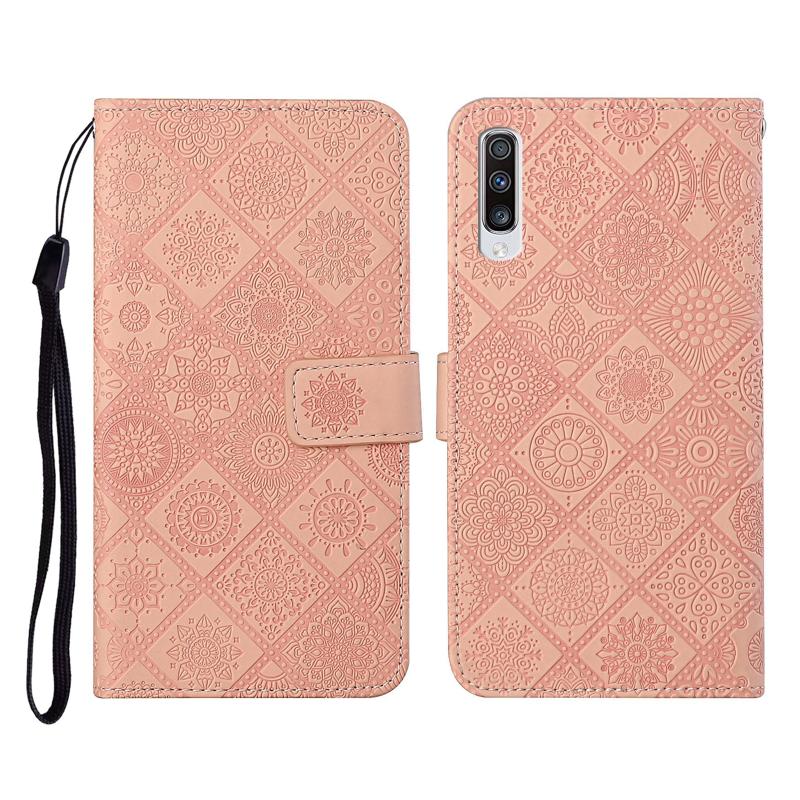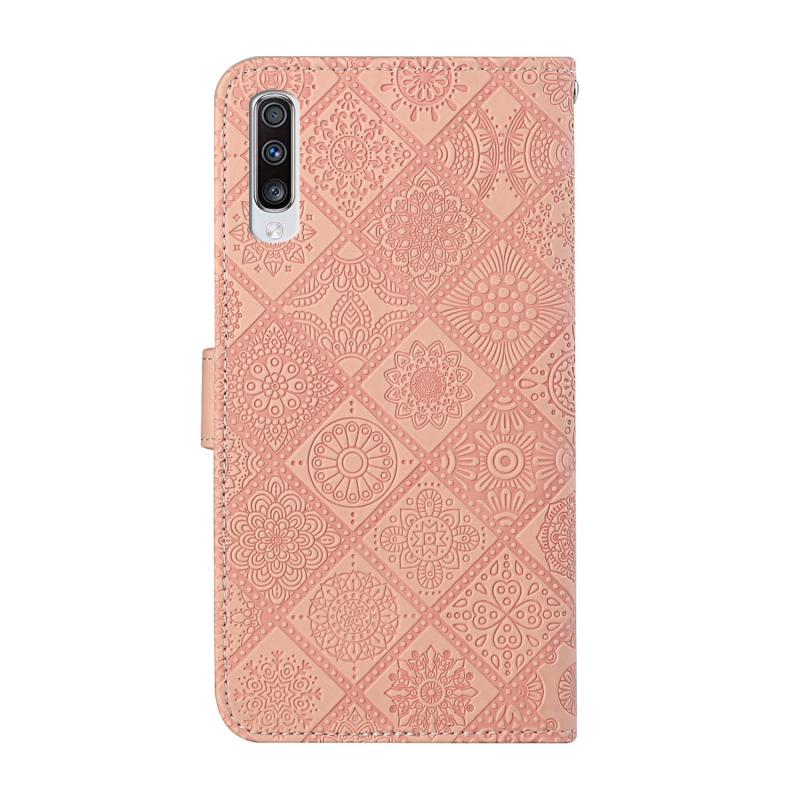 For Samsung Galaxy A70 Ethnic Style Embossed Pattern Horizontal Flip Leather Case with Holder & Card Slots & Wallet & Lanyard(Pink)
