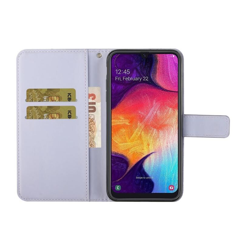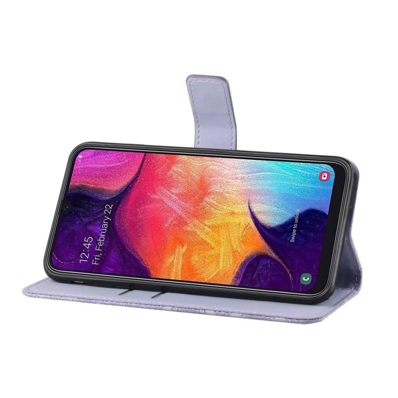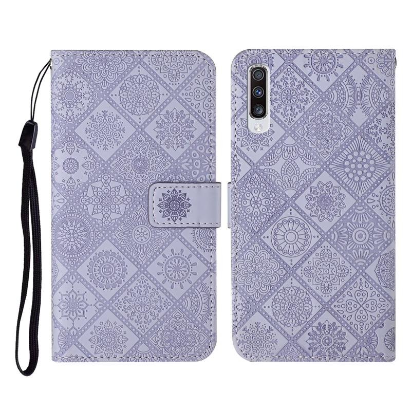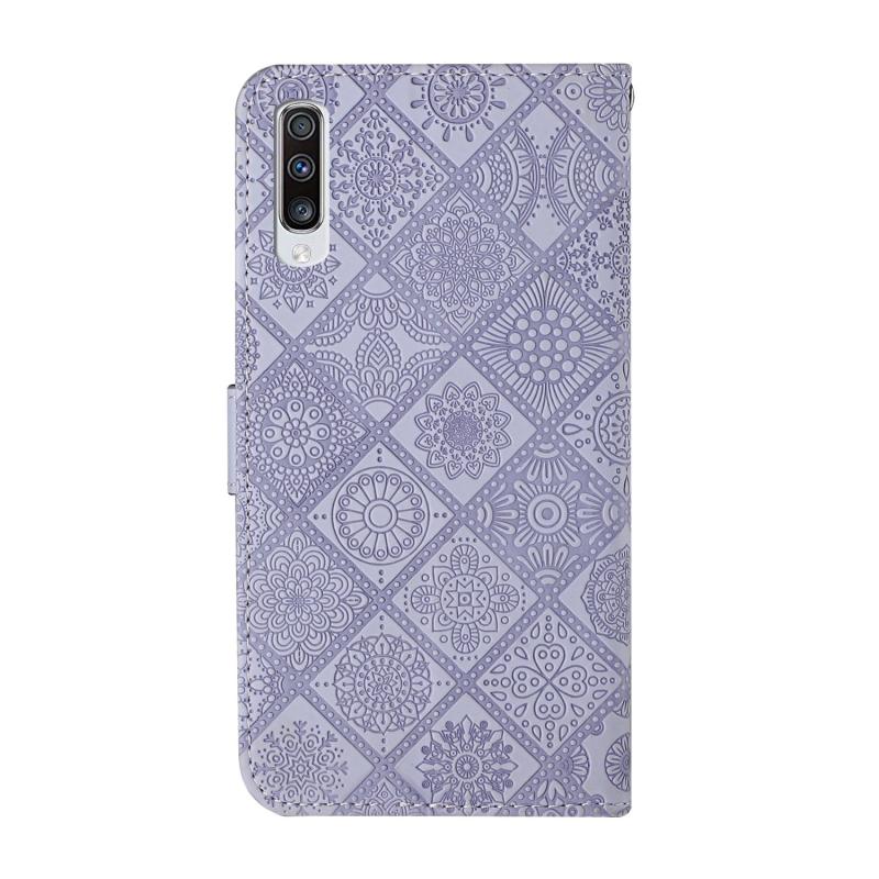 For Samsung Galaxy A70 Ethnic Style Embossed Pattern Horizontal Flip Leather Case with Holder & Card Slots & Wallet & Lanyard(Purple)