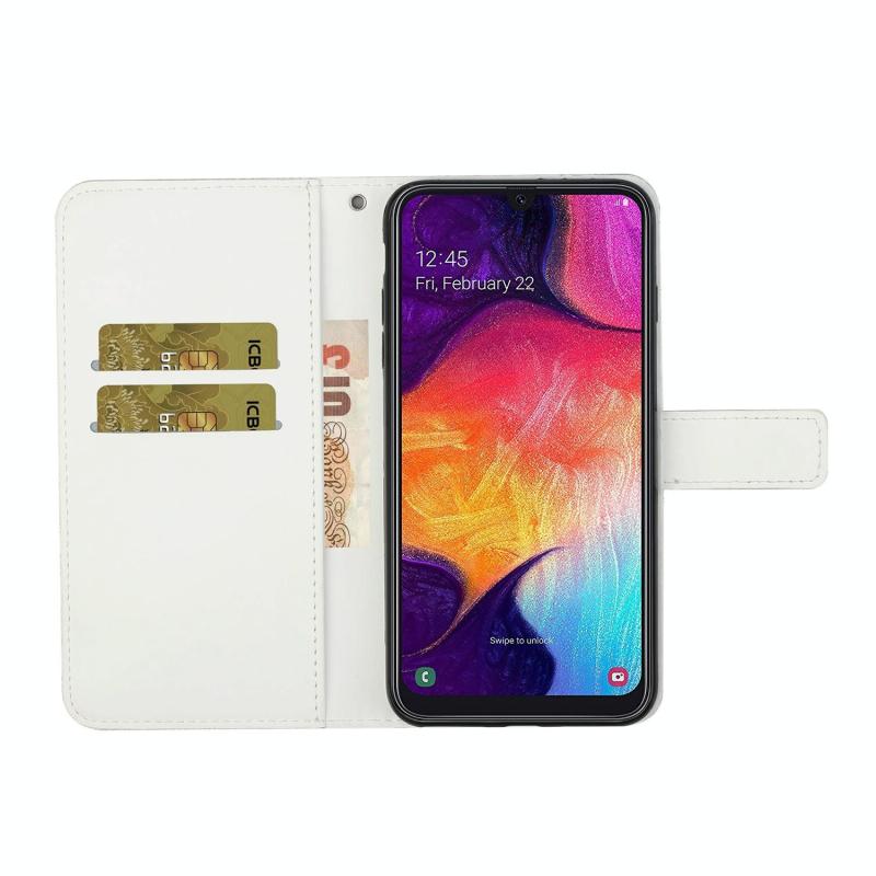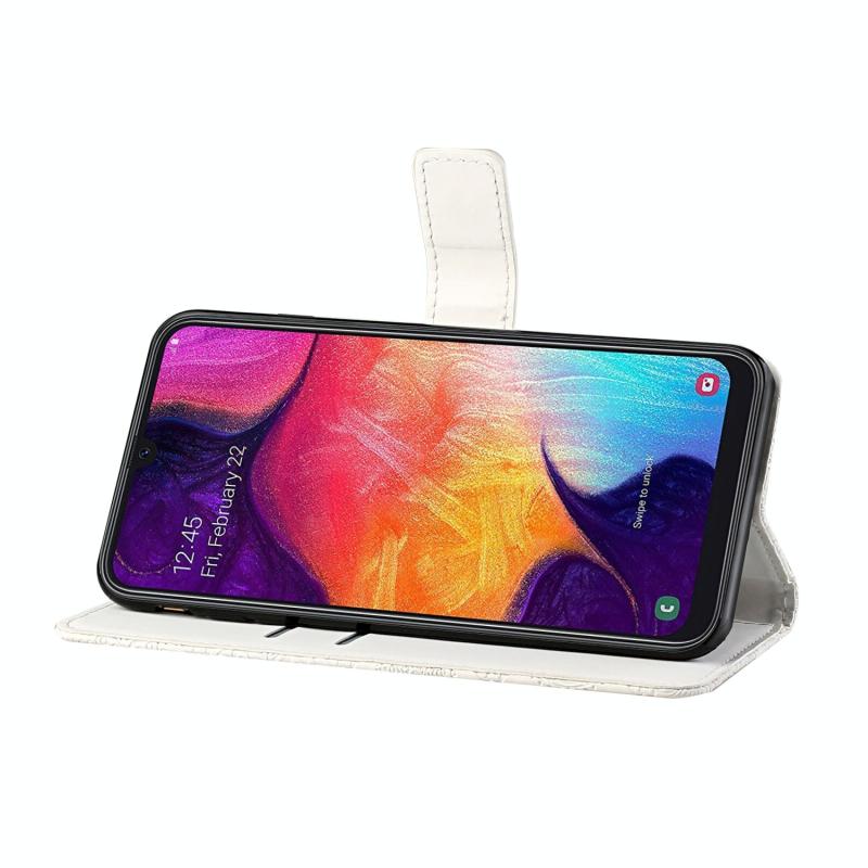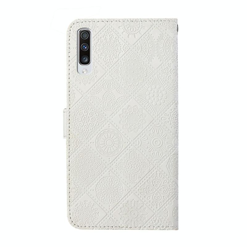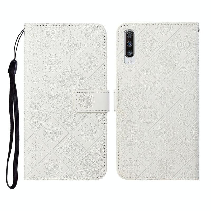 For Samsung Galaxy A70 Ethnic Style Embossed Pattern Horizontal Flip Leather Case with Holder & Card Slots & Wallet & Lanyard(White)