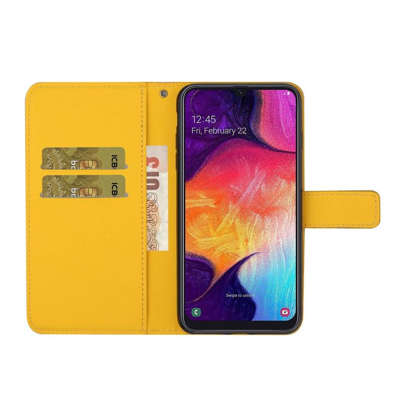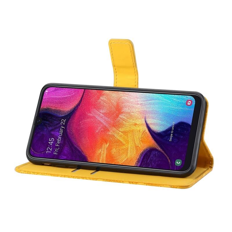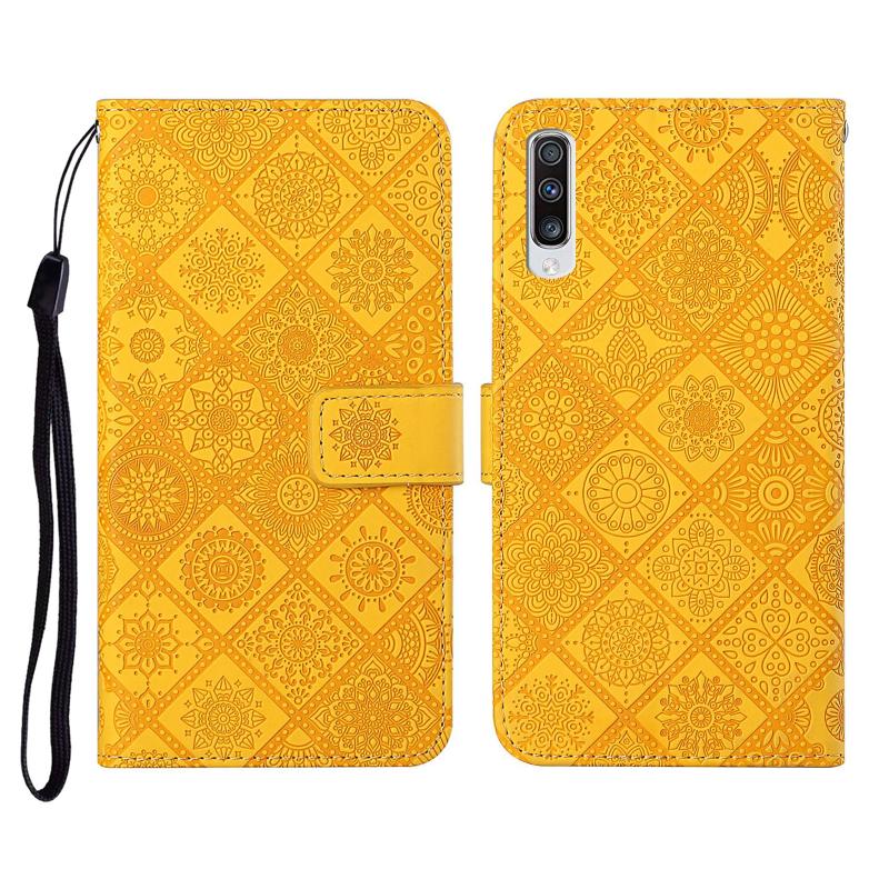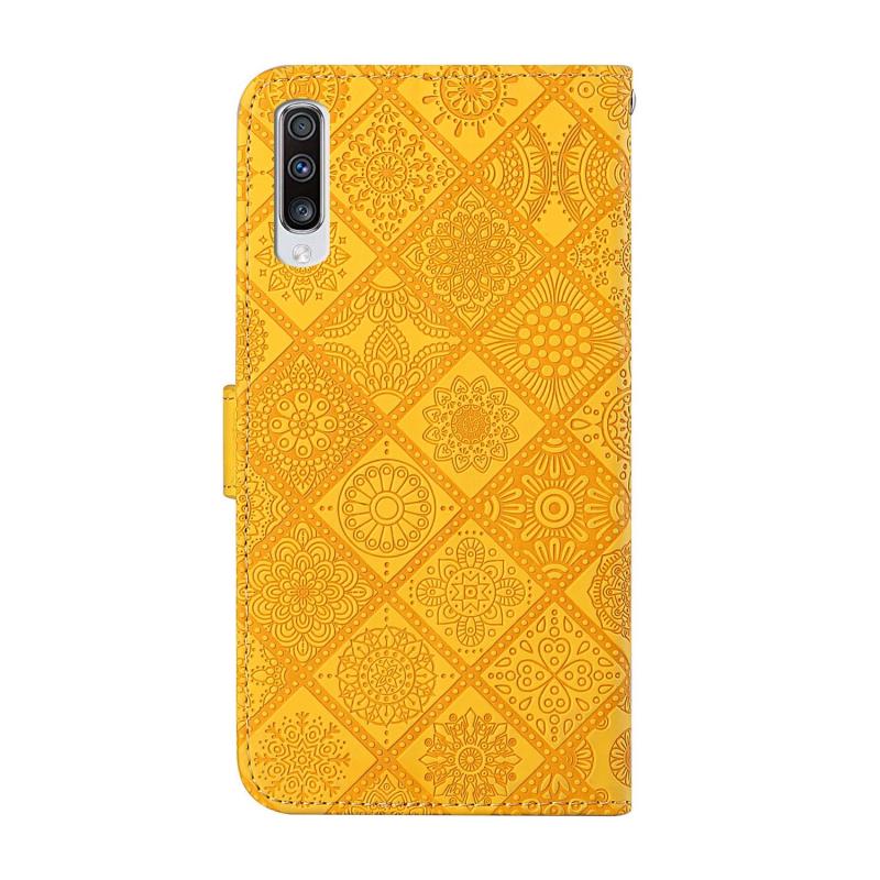 For Samsung Galaxy A70 Ethnic Style Embossed Pattern Horizontal Flip Leather Case with Holder & Card Slots & Wallet & Lanyard(Yellow)
