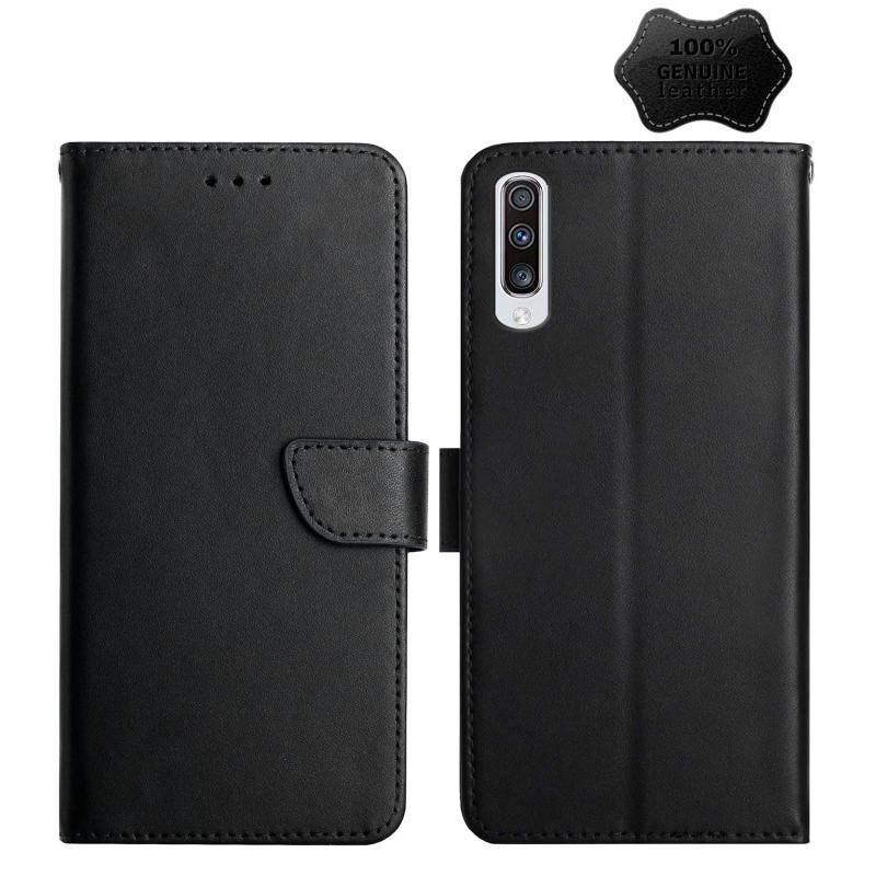 Θήκη τηλεφώνου Samsung Galaxy A70, γνήσιο δέρμα, οριζόντια, με μαγνητικό κλείσιμο και προστασία από δακτυλικά αποτυπώματα (Μαύρο)