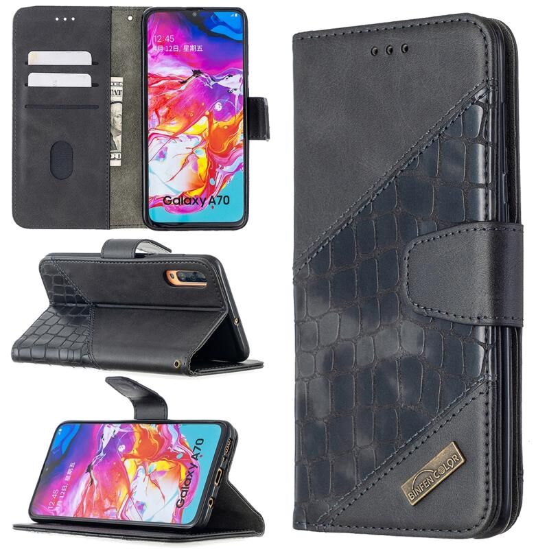 Θήκη Samsung Galaxy A70, Οριζόντια, Δερμάτινη PU με Υφή Κροκόδειλου, σε Αντίστοιχο Χρώμα, με Θήκη Πορτοφολιού, Κάτοχο & Θήκες Καρτών (Μαύρο)