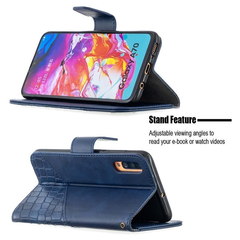Θήκη Samsung Galaxy A70, Οριζόντια, Δερμάτινη PU με Υφή Κροκόδειλου, σε Αντίστοιχο Χρώμα, με Θήκη Πορτοφολιού, Κάτοχο & Θήκες Καρτών (Μαύρο)